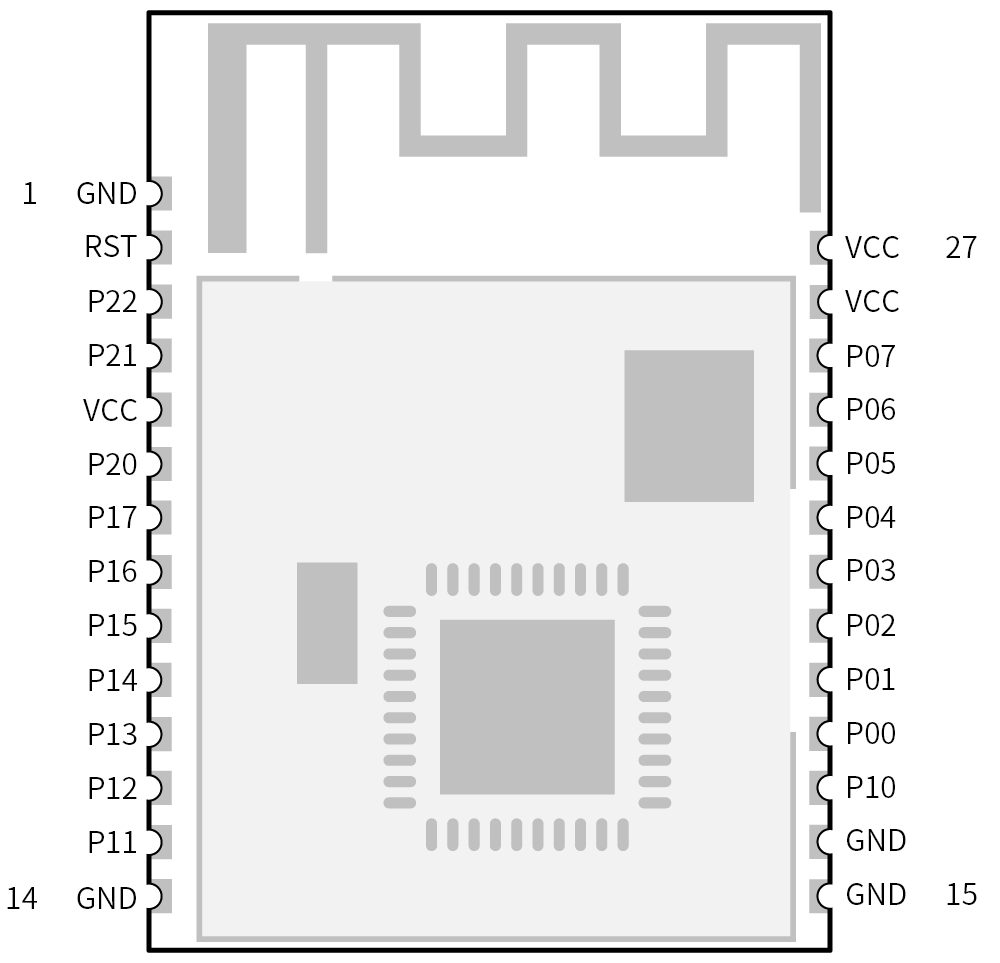 | Pin5 | P27 | Positive Supply | Power Supply: 2.0 V - 3.6 V |